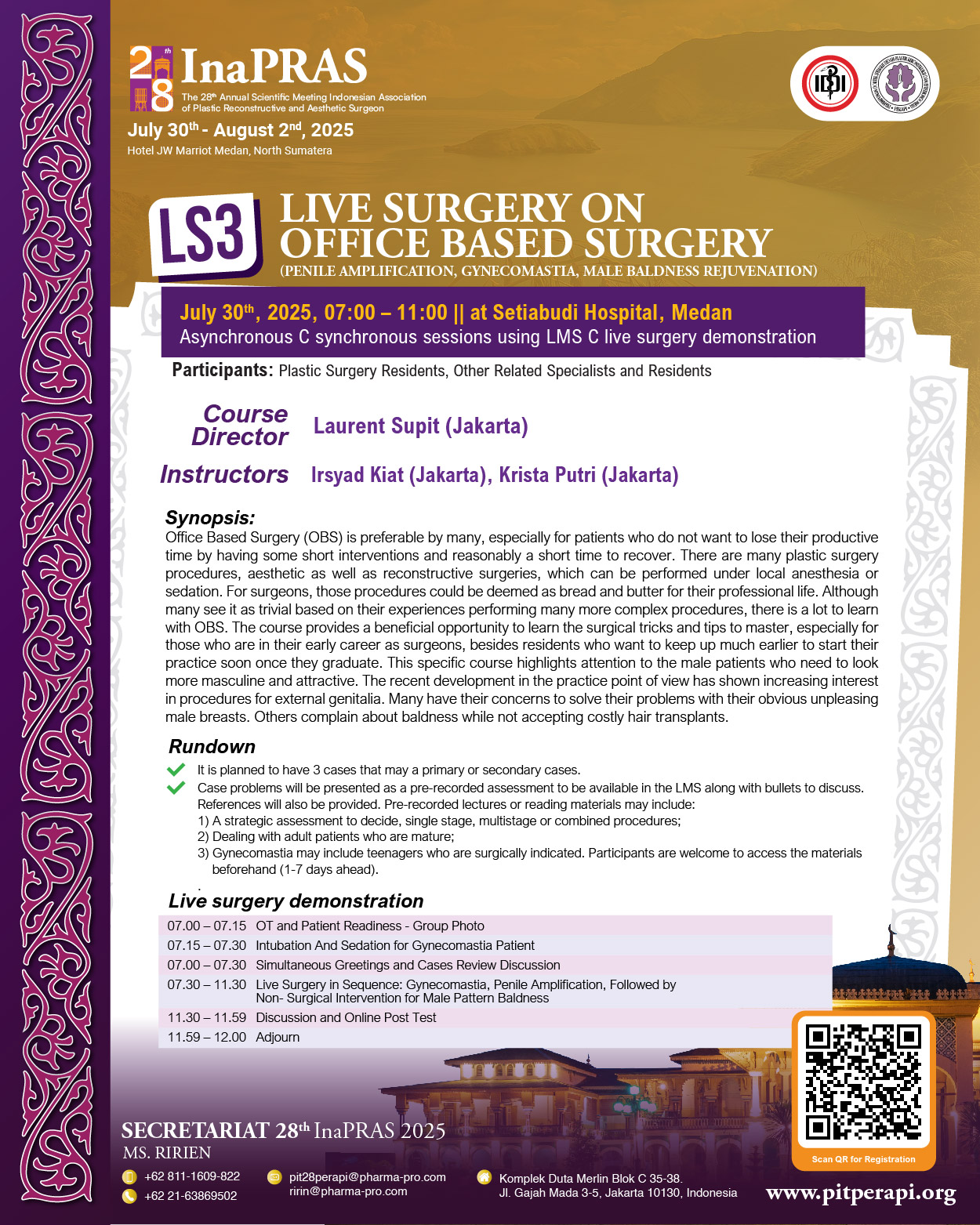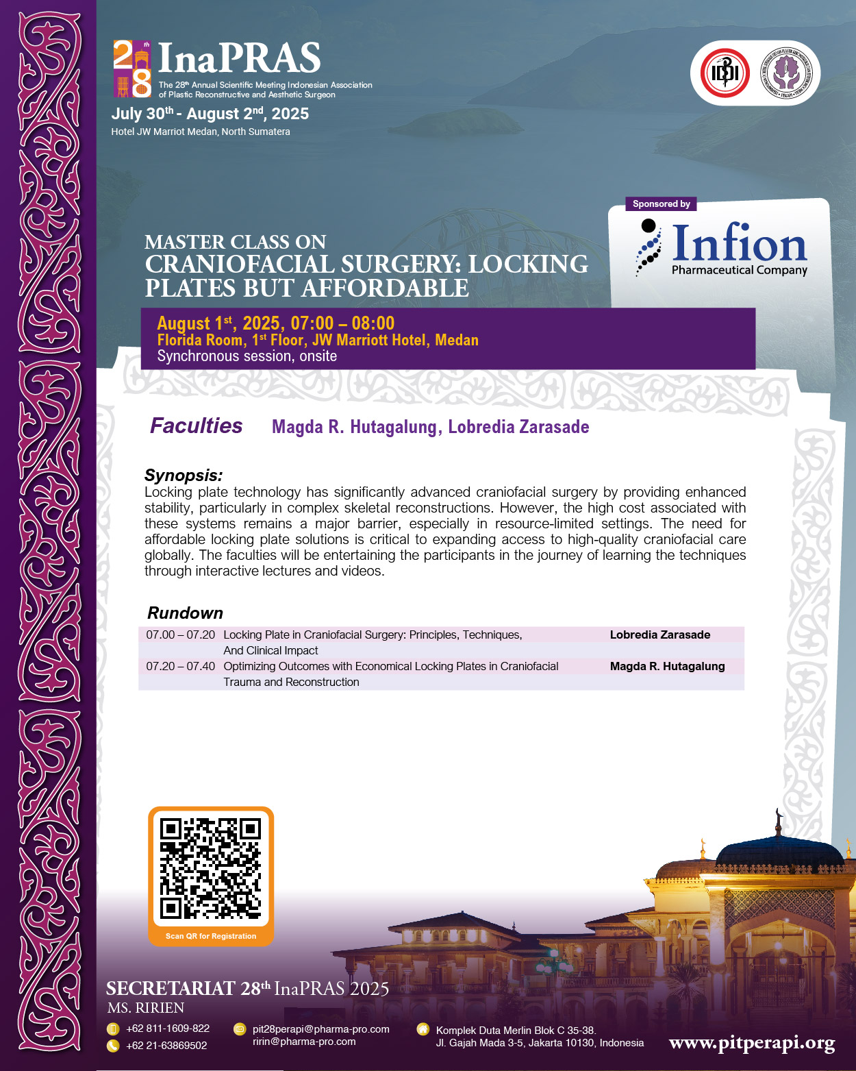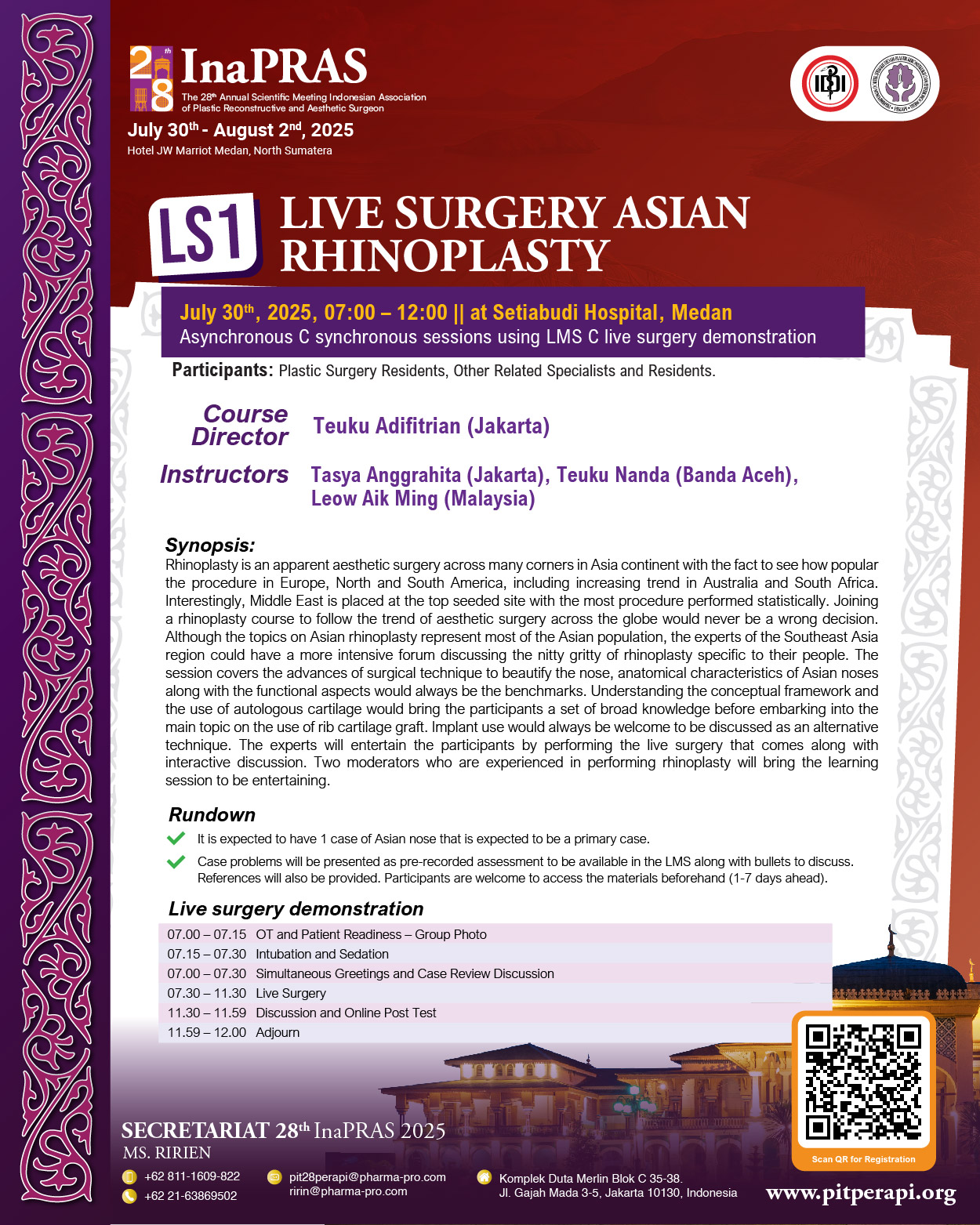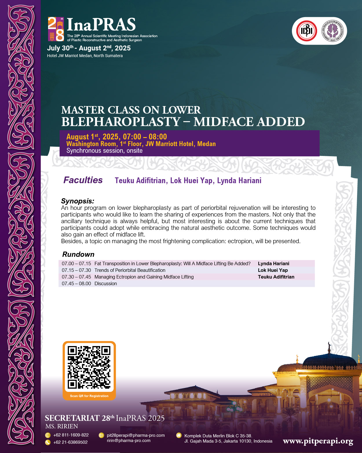 It is with great honor and enthusiasm that we welcome you to “The 28th Annual Scientific Meeting of InaPRAS, on July 30 to August 1, 2025, at JW Marriott Hotel, Medan.
