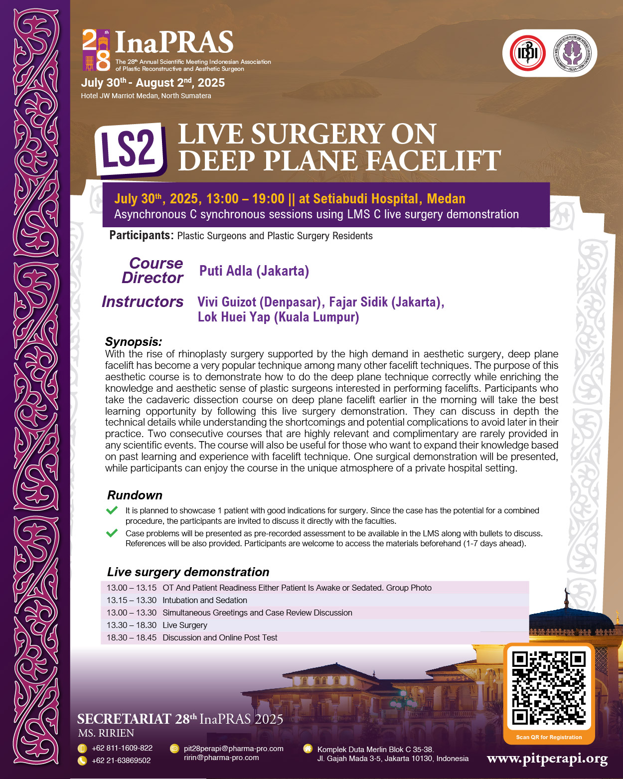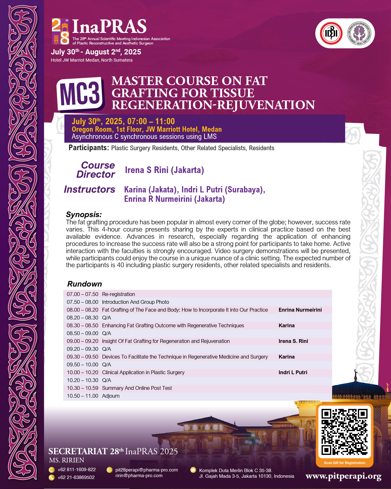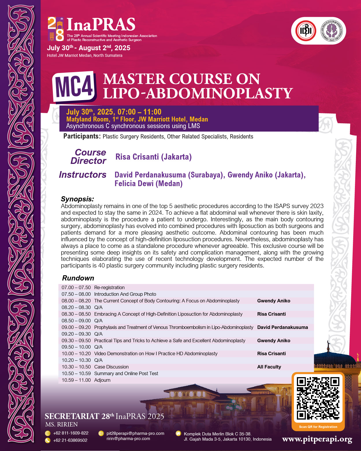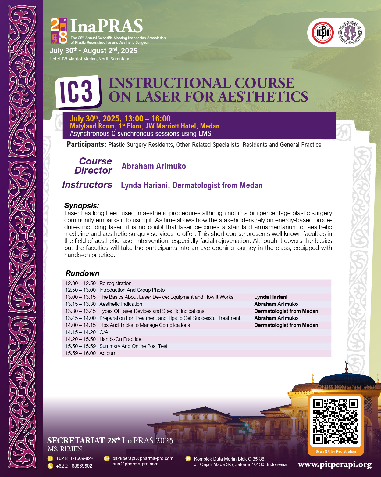 It is with great honor and enthusiasm that we welcome you to “The 28th Annual Scientific Meeting of InaPRAS, on July 30 to August 1, 2025, at JW Marriott Hotel, Medan.