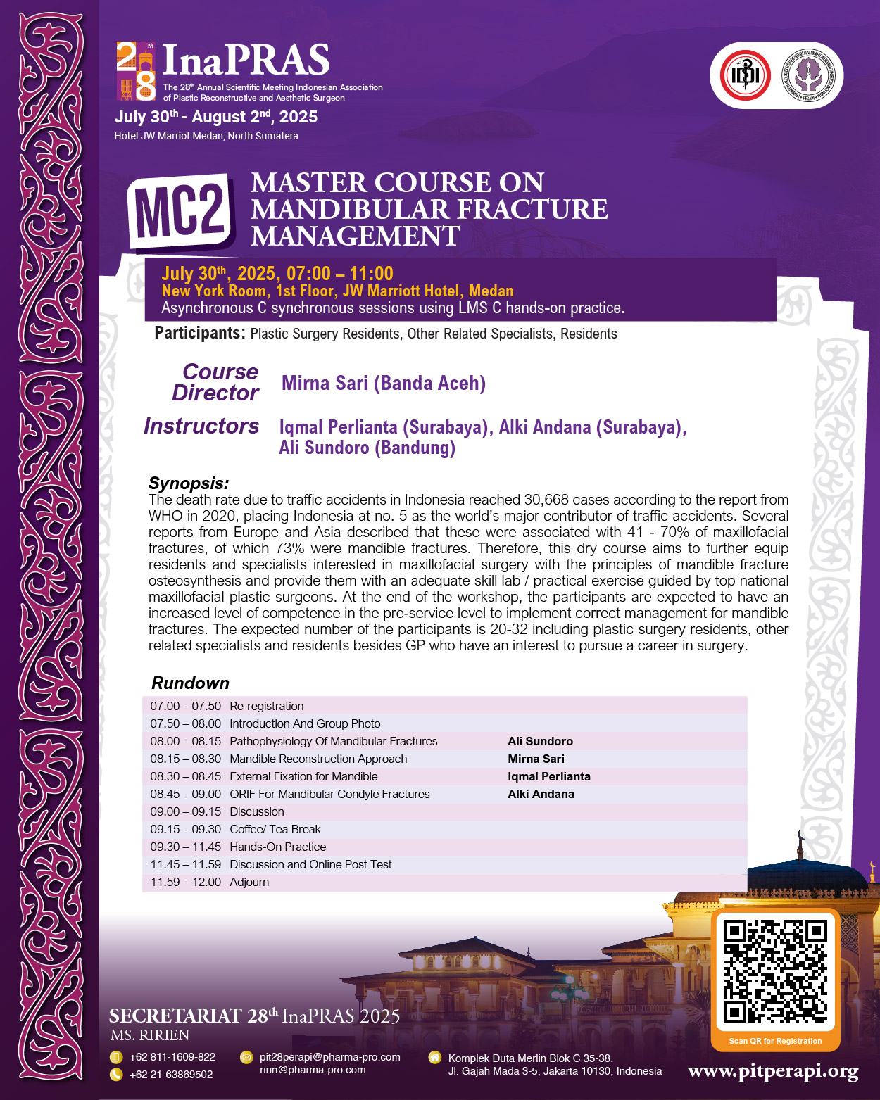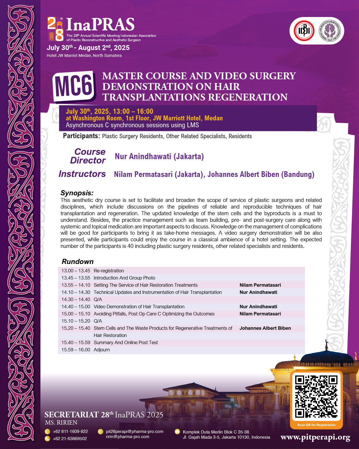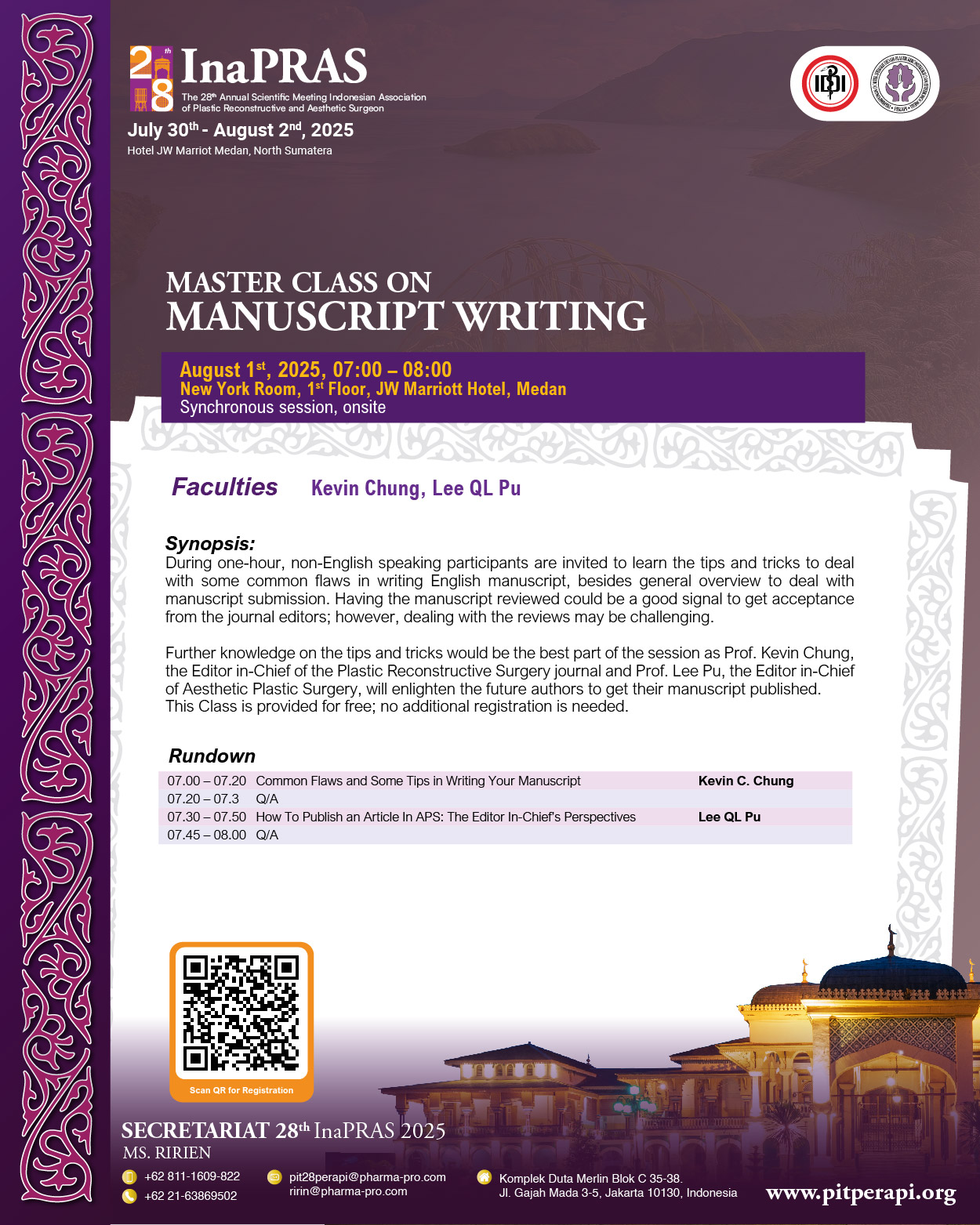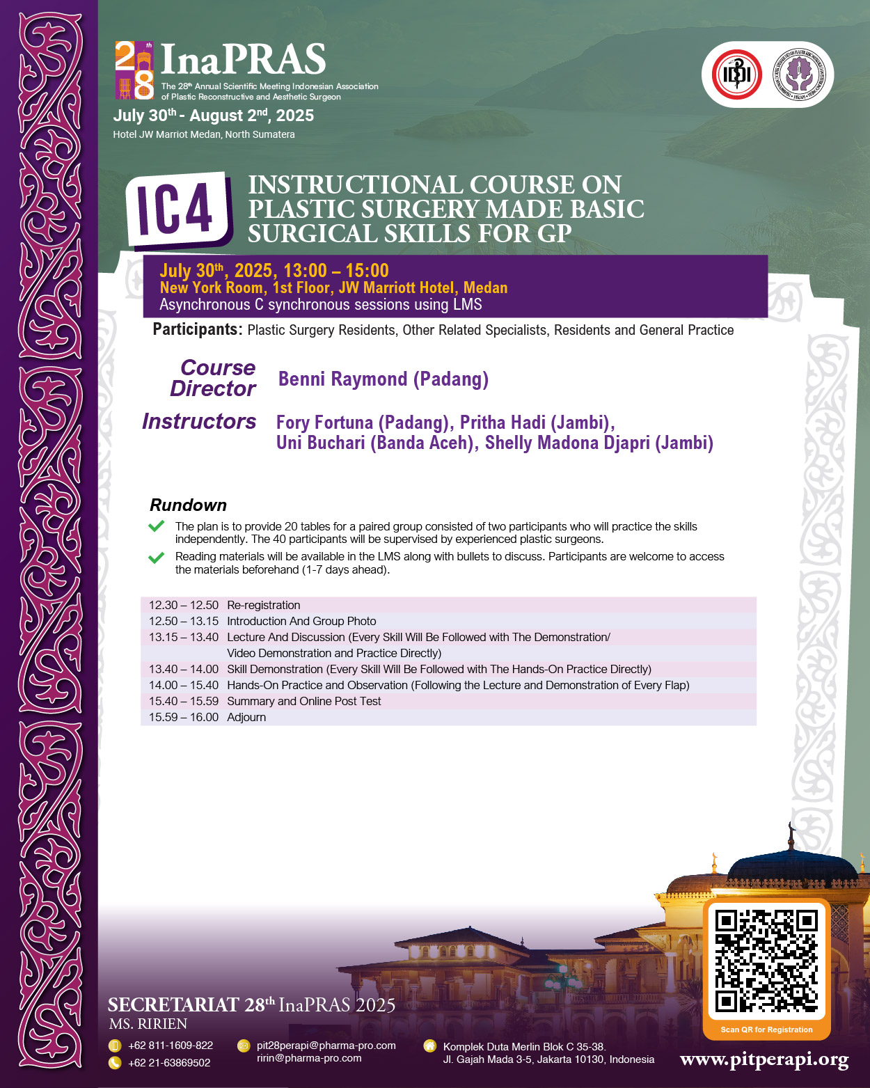 It is with great honor and enthusiasm that we welcome you to “The 28th Annual Scientific Meeting of InaPRAS, on July 30 to August 1, 2025, at JW Marriott Hotel, Medan.
