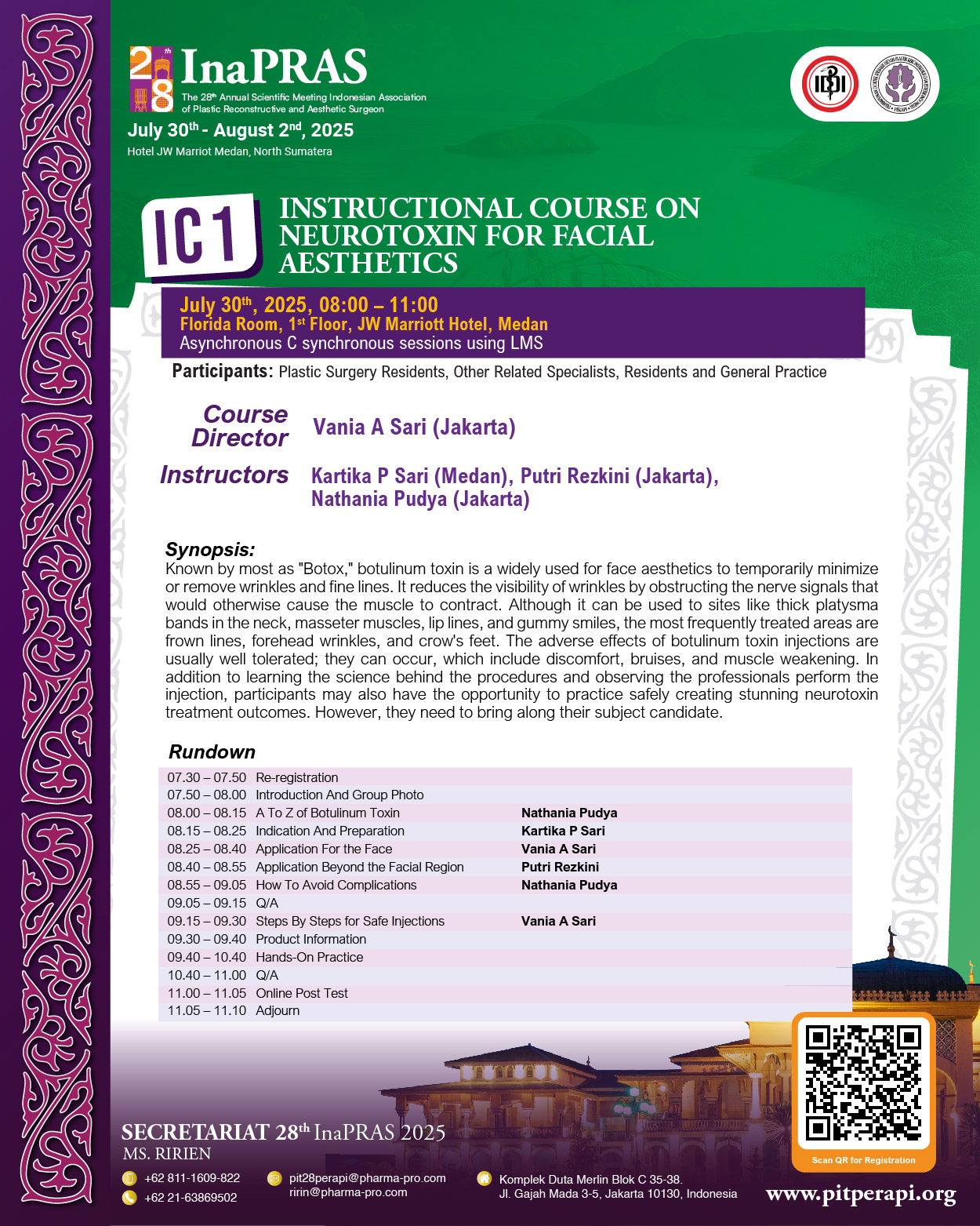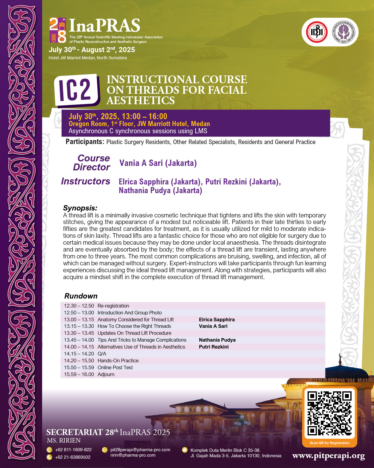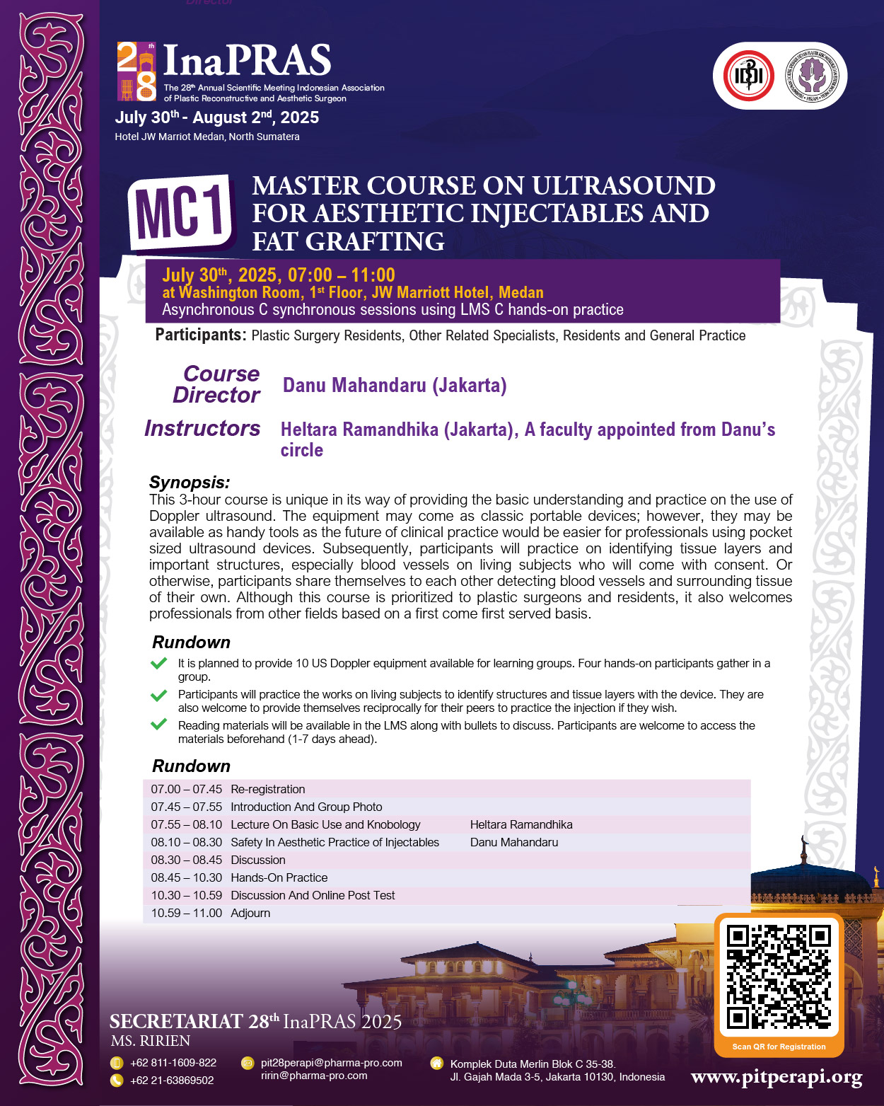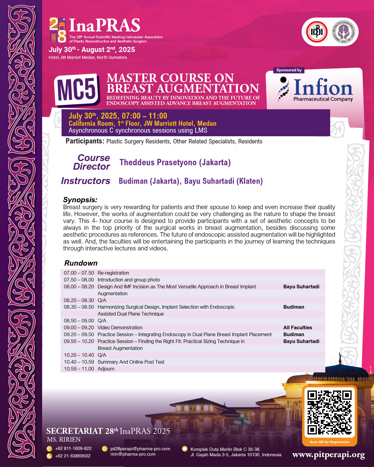 It is with great honor and enthusiasm that we welcome you to “The 28th Annual Scientific Meeting of InaPRAS, on July 30 to August 1, 2025, at JW Marriott Hotel, Medan.